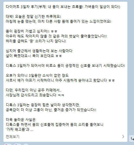 다들 3일차를 기점으로 몸이 가벼워졌다고 하시더라고요.